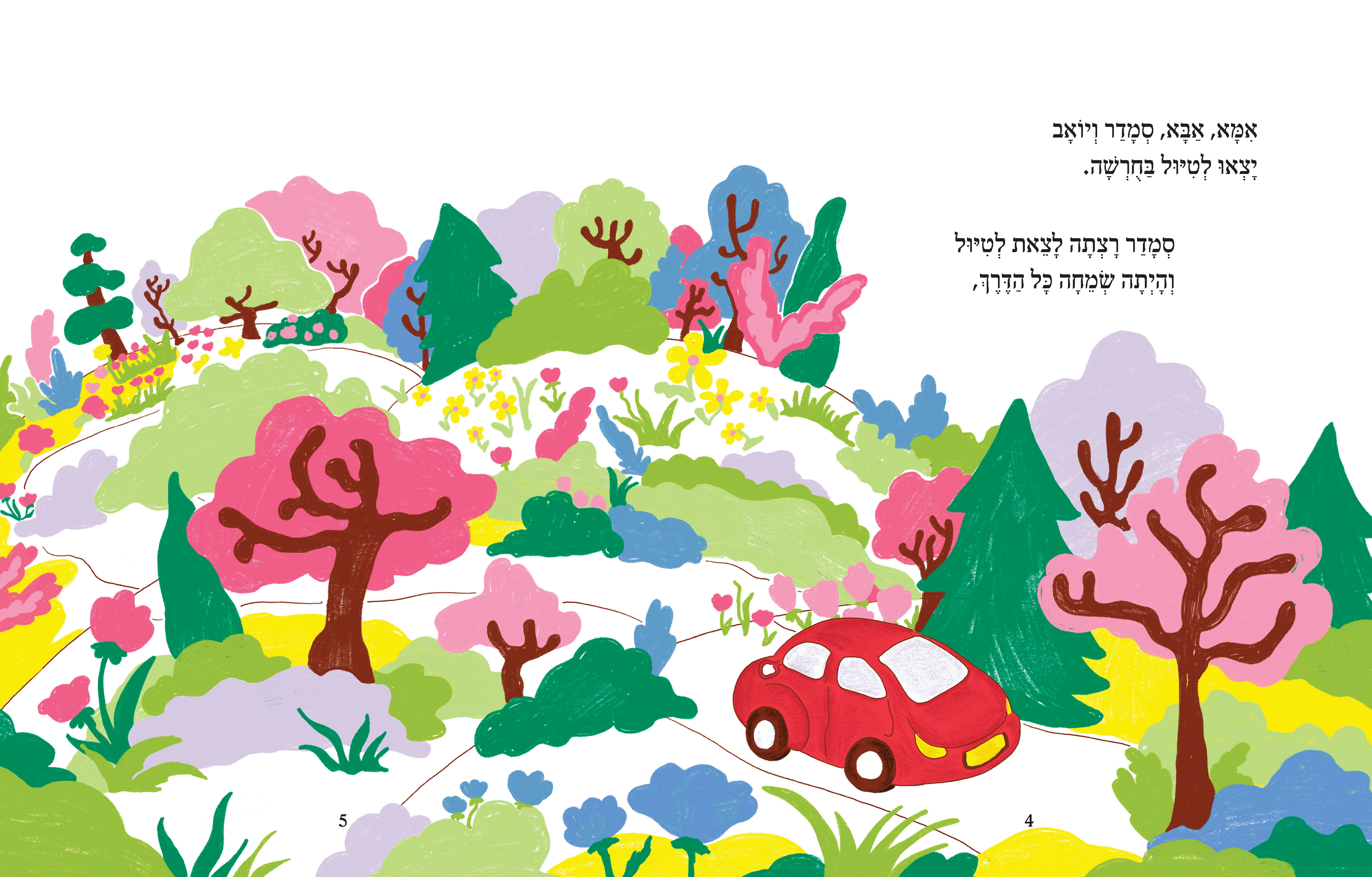In this project, I illustrated the book "Smadar is Looking for a Friend", written by Nira Harel. I was tasked with creating a new, accessible, and inviting world for children to enjoy this classic story in a way that is suited to our times.
